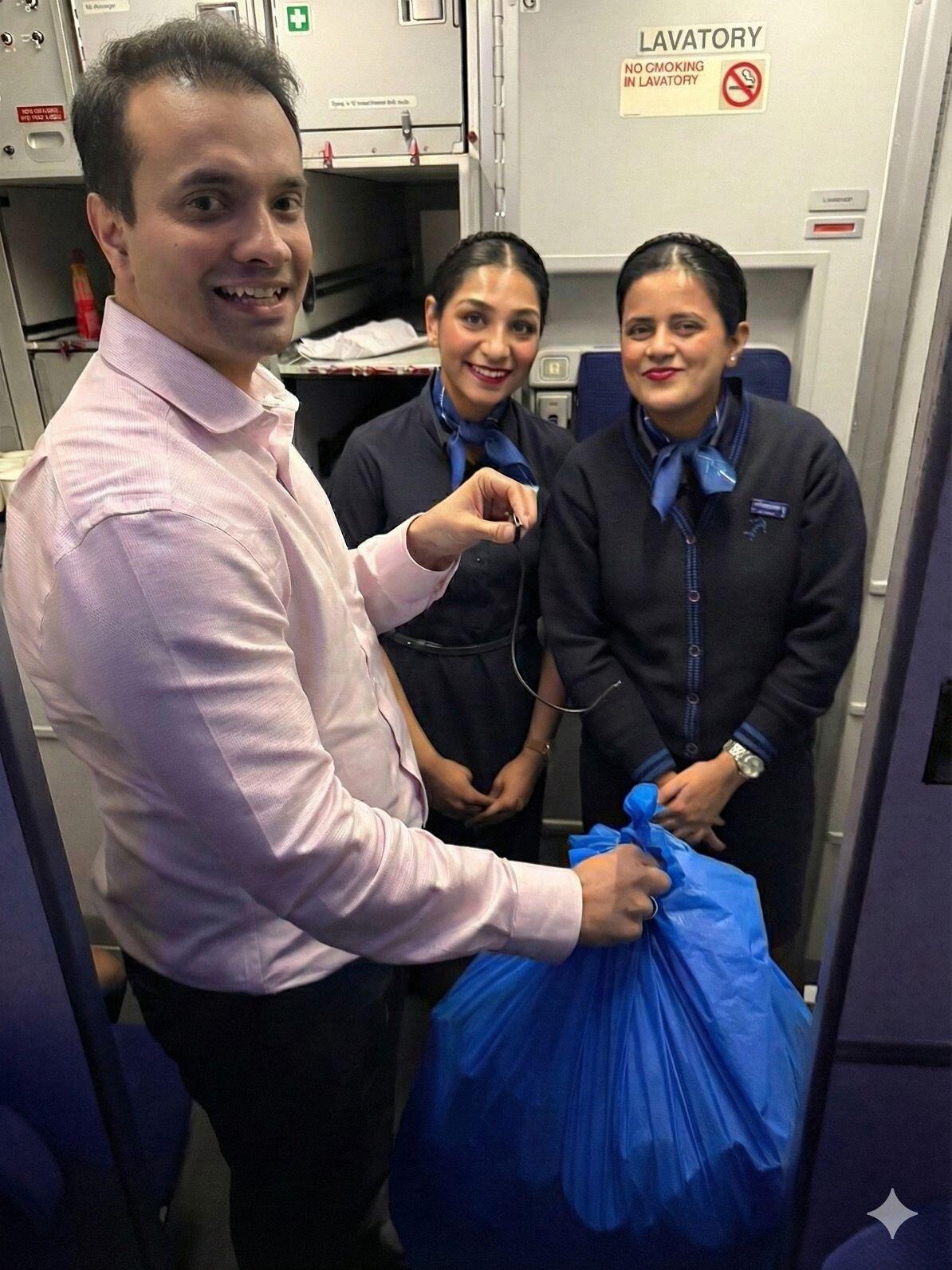 Meet Deetya and Shambhavi: The stars of my IndiGo Flight 6E 292 from Kolkata to Ahmedabad. Yes, that’s a trash bag and a small black wire in my hand.